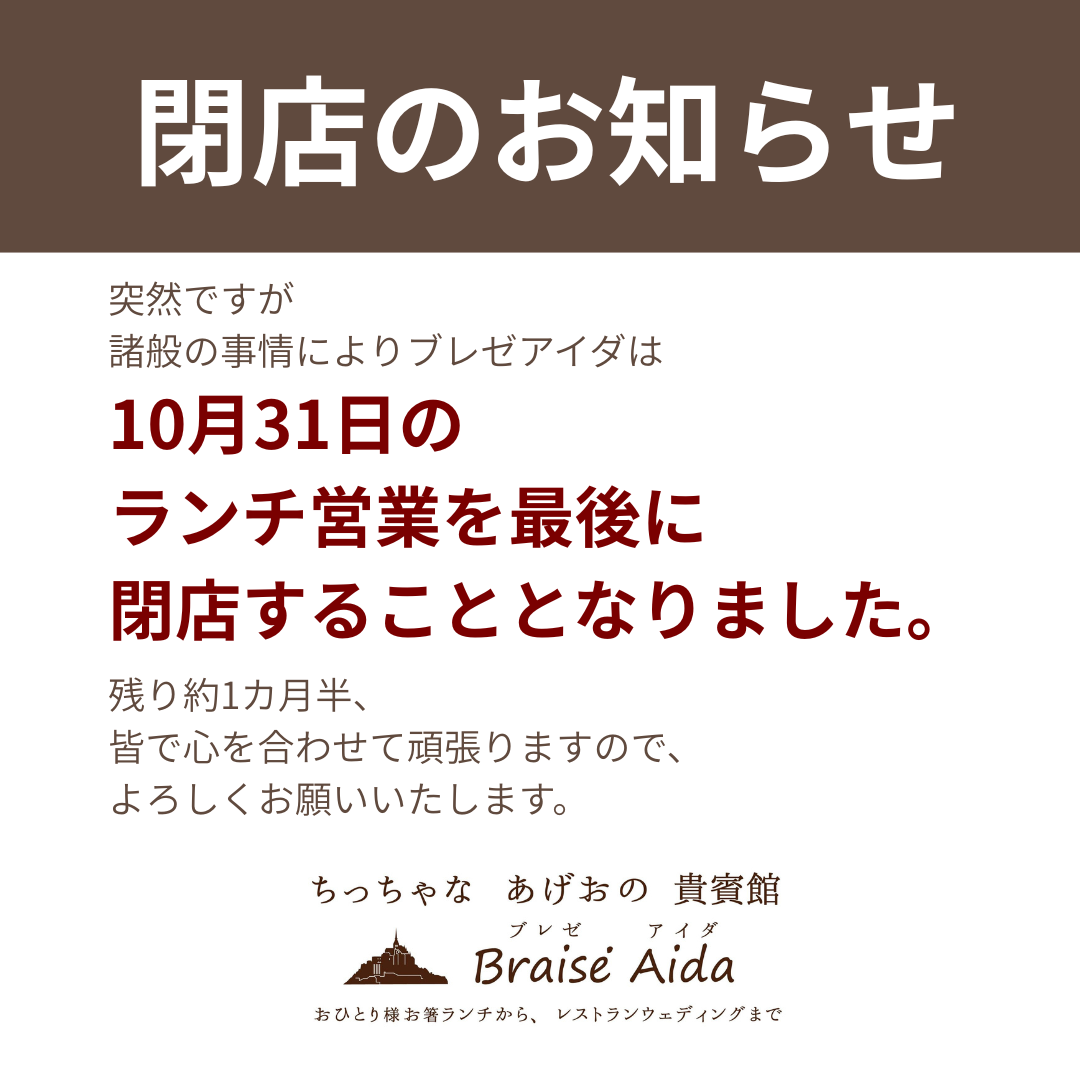 10月31日(金)ランチの営業を最後に閉店する事となりました。